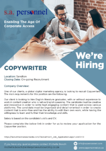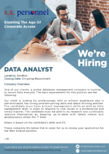 Careers We Offer A Wide Range Of Exciting Career Opportunities At The Different Offices Of Our Partners. Apply For One Of Our Positions Analyst Application Developer Copywriter Creative Analyst Cyber Security Analyst Data Analyst IT Engineer Cape Town IT Engineer Durban IT Engineer Sandton Service Desk Supervisor Offie Assistant Operations Manager Web Analyst Join Our Mailing List to Learn More About Our Services! Please leave this field empty We don’t spam! Read our privacy policy for more info. Check your inbox or spam folder to confirm your subscription. Created By www.enewmedia.com Facebook Twitter Youtube Linkedin Instagram